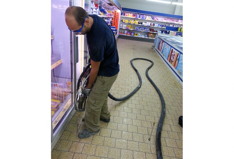 La intervención ha sido ejecutada en 1125,19 m2 de solera mediante el método SOIL STABILIZATIONTM, planificando la intervención con turnos de noche para no afectar el normal utilizo de la actividad comercial durante el día. Para cada turno se ha tratado una zona de casi 100 m2 de solera, realizando la totalidad de la zona a consolidar en 11 noches.